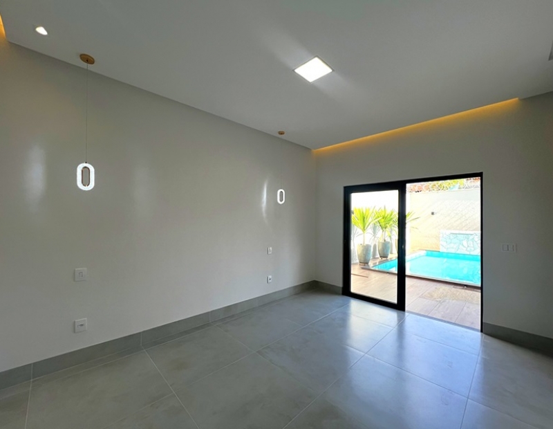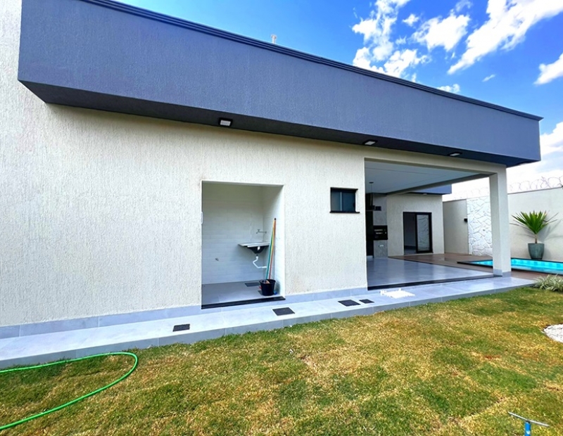 A casa a venda tem 3 quartos sendo 3 suítes plenas, a suíte principal possuí closet e saída privativa para área de lazer. Sala com pé direito alto com incrível sistema de iluminação em leds. Cozinha é integrada com a varanda gourmet já equipada com a churrasqueira à carvão, pia de apoio em granito, banheiro externo e uma refrescante piscina com ducha. Jardim frontal gramado, corredor de acesso lateral. Área de serviço coberta. 2 vagas de garagem (possibilidade para até 4 vagas de garagem).