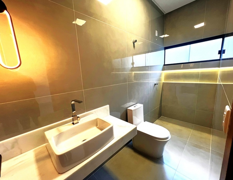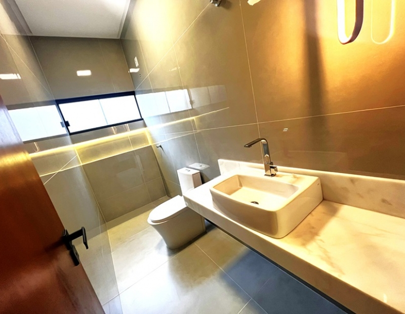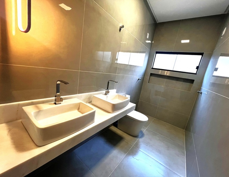 O acabamento da casa é incrível. As janelas frontais do imóvel obedece a perspectiva de fachada, são amplas o que garante uma luz natural durante todo dia. As demais janelas também são em vidro temperado, piso em porcelanato com rodapés embutidos, ampla bancada na cozinha e nichos nos banheiros, dentre outros detalhes...