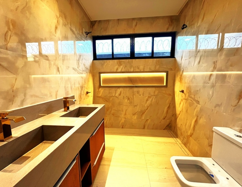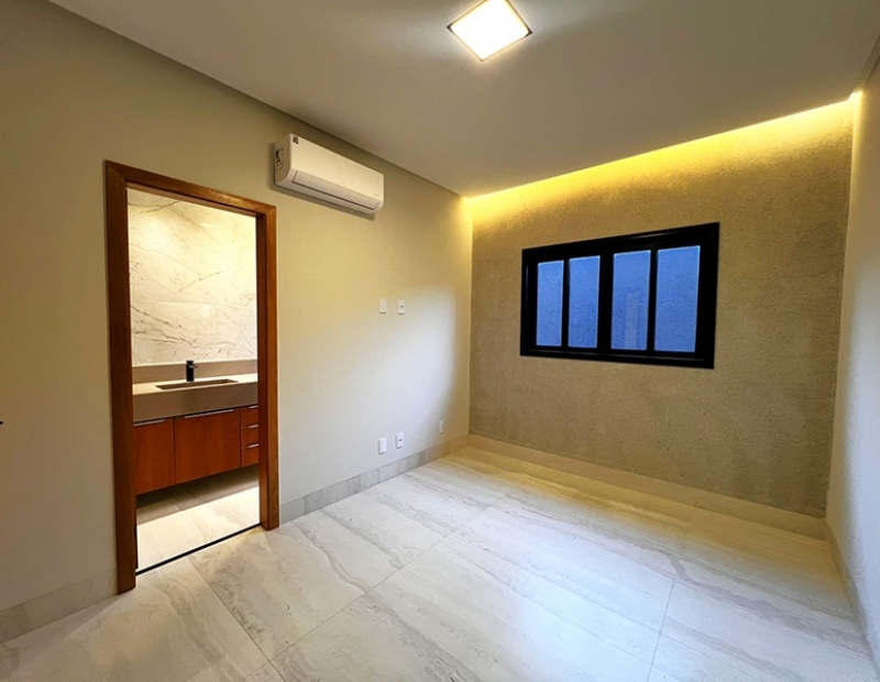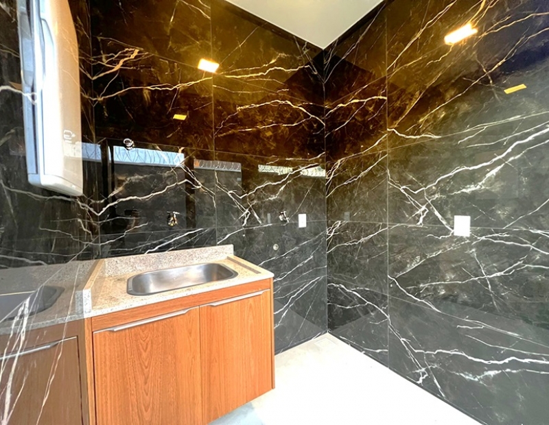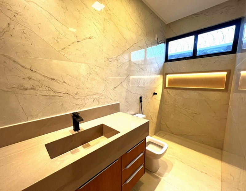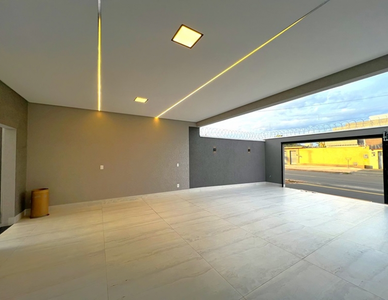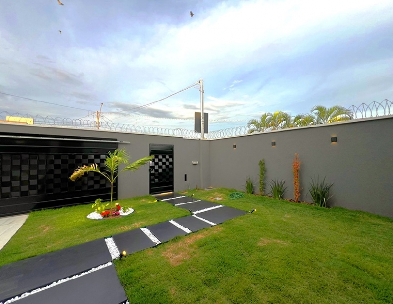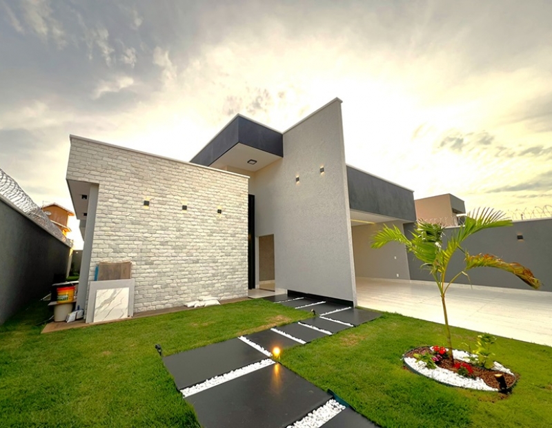 O acabamento da casa é incrível pois as janelas são amplas o que garante uma luz natural e ventilação durante todo dia. As demais janelas também são em vidro temperado. A fachada frontal do imóvel moderna um visual marcante que se destaca logo na entrada da casa.