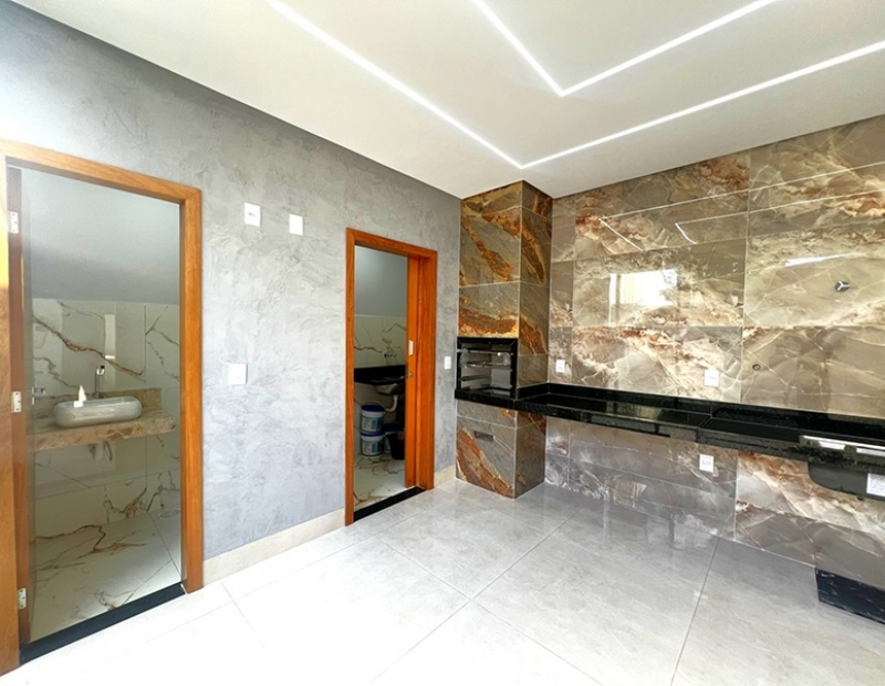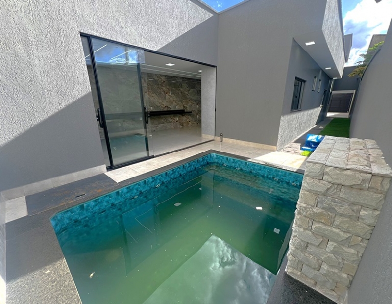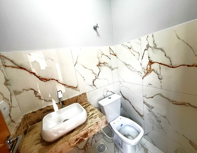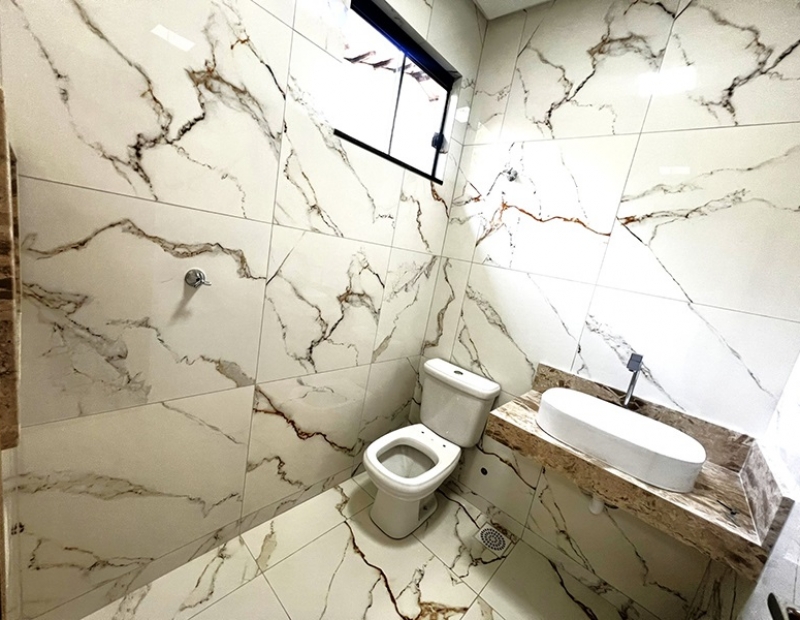 O acabamento da casa é incrível pois as janelas frontais do imóvel obedece a perspectiva de fachada, são amplas o que garante uma luz natural durante todo dia. As demais janelas também são em vidro temperado, portão de veículo e de pedestre separados, piso em porcelanato com rodapés embutidos, ampla bancada na cozinha e nichos nos banheiros, dentre outros detalhes...