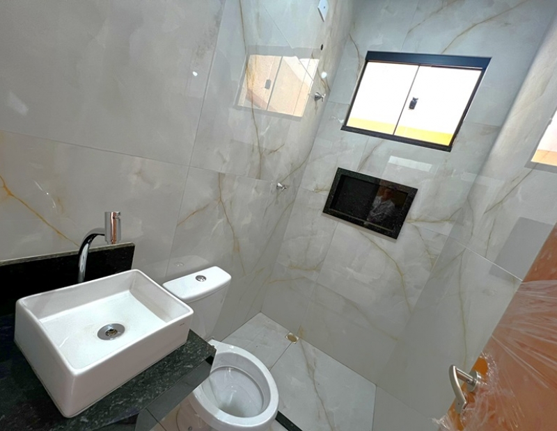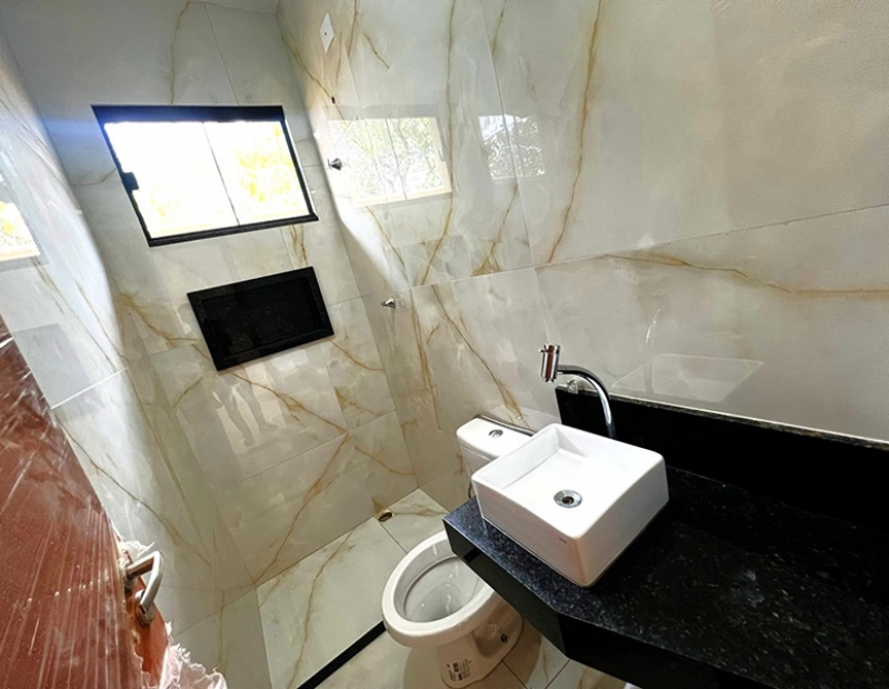 Cada detalhe desta casa foi pensado para oferecer conforto, praticidade e um visual moderno. O piso em porcelanato traz elegância aos ambientes, além de ser resistente e fácil de manter, proporcionando um toque refinado em todos os cômodos.