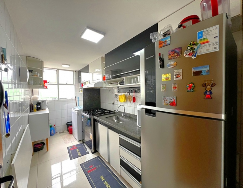 O apartamento é bem funcional distribuído em 64m2, possuí 2 quartos sendo 1 suíte, sala integrada com uma ampla sacada, banheiro social, cozinha e área de serviço. 1 vaga de garagem coberta de fácil acesso. Possuí armários planejados, iluminação, box de vidro temperados nos banheiros e muito mais...
