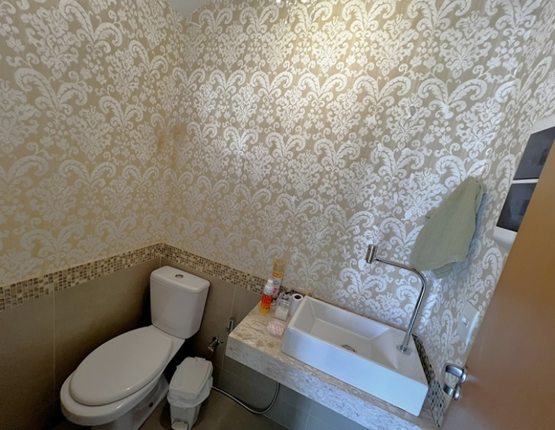 A casa tipo sobrado é uma revenda, possuí 3 quartos sendo 1 suíte plena com amplo closet, ampla sala 2 ambientes com lavabo, cozinha americana conceito aberto. A sala já integra com a área de lazer privativa composta por uma ampla varanda gourmet composta por churrasqueira à carvão, forno para pizza e pia de apoio. Área de serviço isolada. A vaga de garagem é coberta para 2 veículos.