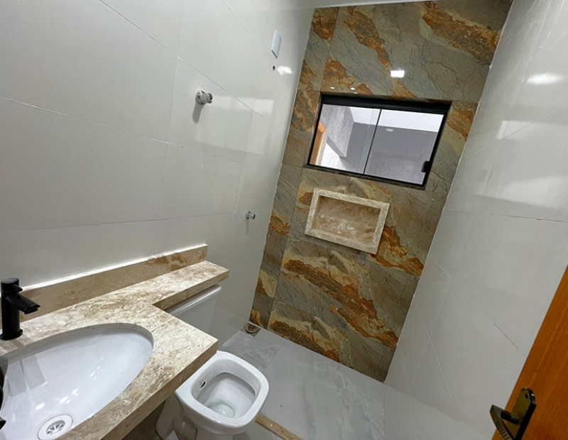 O acabamento da casa é incrível pois as janelas frontais do imóvel obedece a perspectiva de fachada, são amplas o que garante uma luz natural durante todo dia. As demais janelas também são em vidro temperado, piso em porcelanato, ampla bancada na cozinha e nichos nos banheiros, dentre outros detalhes...