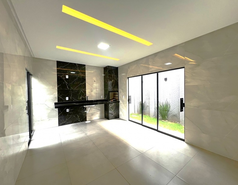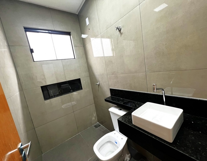 O acabamento da casa é incrível pois as janelas frontais do imóvel obedece a perspectiva de fachada, são amplas o que garante uma luz natural durante todo dia. As demais janelas também são em vidro temperado, piso em porcelanato com rodapés embutidos, ampla bancada na cozinha e nichos nos banheiros, dentre outros detalhes...