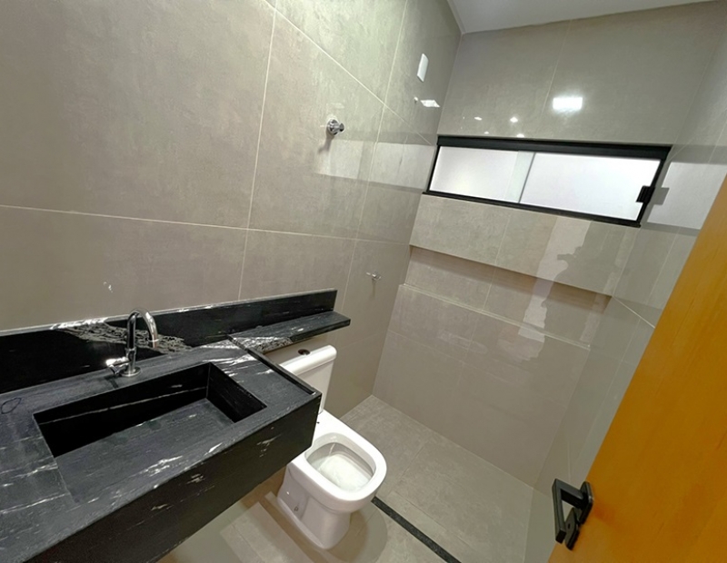 O acabamento da casa é incrível pois as janelas frontais do imóvel obedece a perspectiva de fachada, são amplas o que garante uma luz natural durante todo dia. As demais janelas também são em vidro temperado, piso em porcelanato com rodapés embutidos, ampla bancada na cozinha e nichos nos banheiros, dentre outros detalhes...