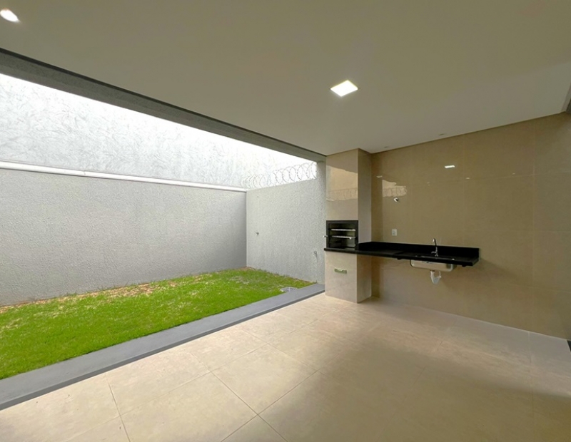 A casa à venda possuí 3 quartos sendo 1 suíte. Sala com pé direito duplo, cozinha integrada com a varanda gourmet com churrasqueira à carvão e pia de apoio em granito. Banheiro externo para visitas. Jardim frontal gramado, corredor de acesso lateral. Área de serviço coberta. 2 vagas de garagem (possibilidade para até 3 vagas de garagem).