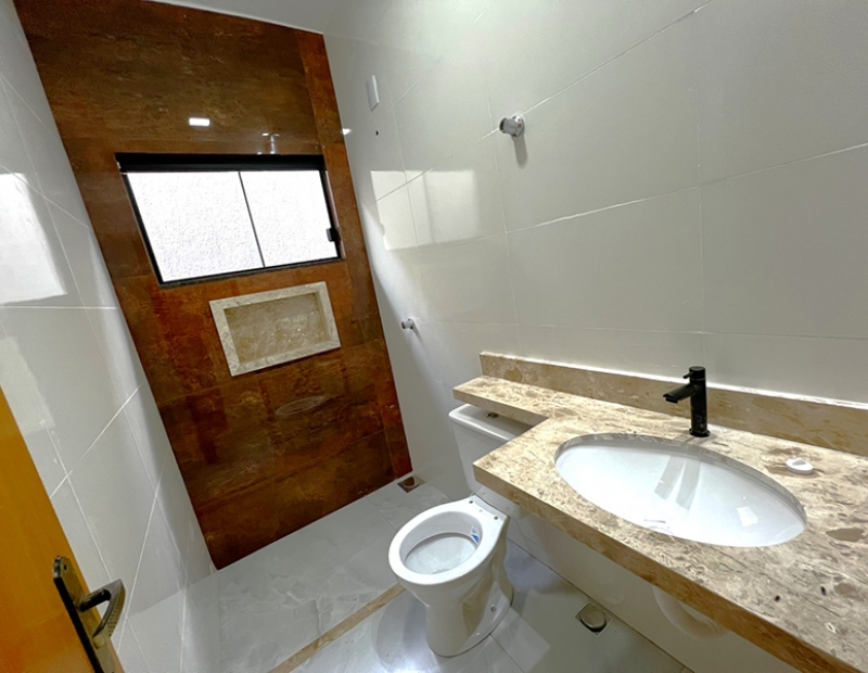 O acabamento da casa é incrível pois as janelas frontais do imóvel obedece a perspectiva de fachada, são amplas o que garante uma luz natural durante todo dia. As demais janelas também são em vidro temperado, piso em porcelanato, ampla bancada na cozinha e nichos nos banheiros, dentre outros detalhes...