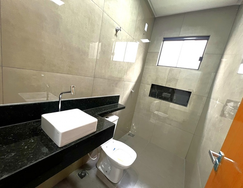 O acabamento da casa é incrível pois as janelas frontais do imóvel obedece a perspectiva de fachada, são amplas o que garante uma luz natural durante todo dia. As demais janelas também são em vidro temperado, piso em porcelanato com rodapés embutidos, ampla bancada na cozinha e nichos nos banheiros, dentre outros detalhes...