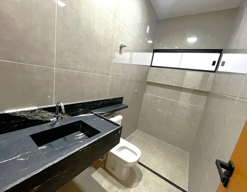 O acabamento da casa é incrível pois as janelas frontais do imóvel obedece a perspectiva de fachada, são amplas o que garante uma luz natural durante todo dia. As demais janelas também são em vidro temperado, piso em porcelanato com rodapés embutidos, ampla bancada na cozinha e nichos nos banheiros, dentre outros detalhes...