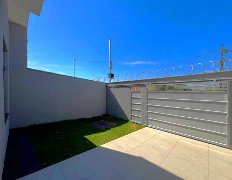 A casa à venda com 3 quartos sendo 1 suíte. Sala, cozinha integrada com varanda gourmet equipada com churrasqueira à carvão, pia de apoio e bancada em granito. Jardim frontal gramado, corredor de acesso lateral. Área de serviço coberta. Banheiro externo na varanda gourmet. 2 vagas de garagem (possibilidade para até 3 vagas de garagem).