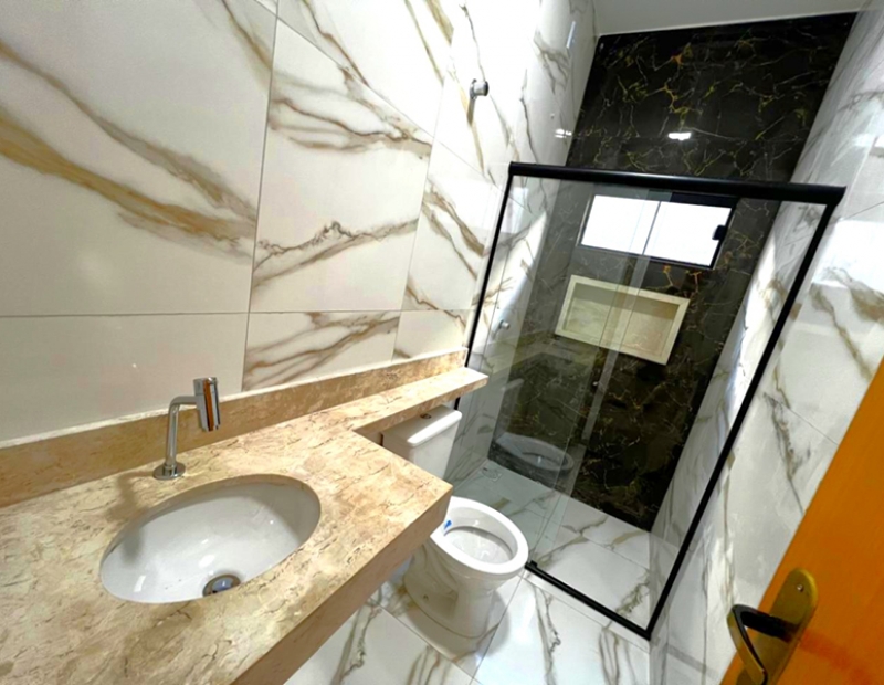 O acabamento da casa é incrível pois as janelas frontais do imóvel obedece a perspectiva de fachada, são amplas o que garante uma luz natural durante todo dia. As demais janelas também são em vidro temperado, piso em porcelanato, ampla bancada na cozinha e nichos nos banheiros, dentre outros detalhes...