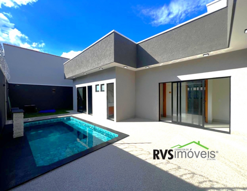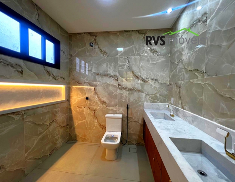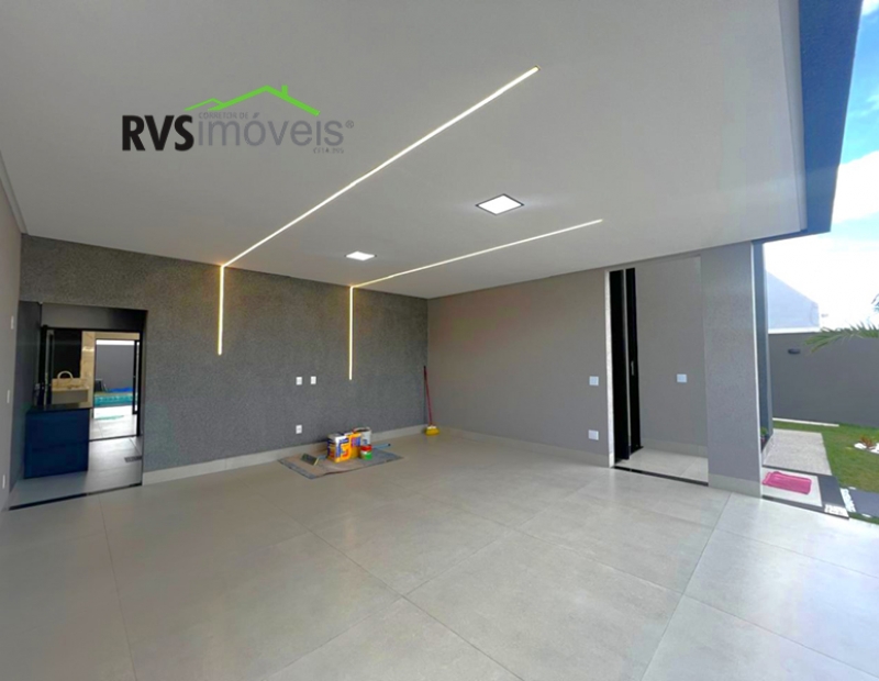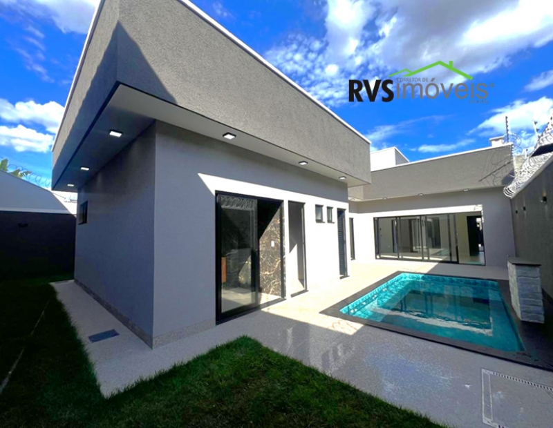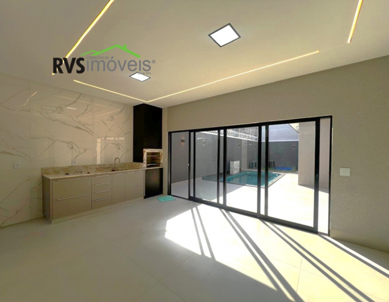 A casa à venda possuí 3 quartos sendo 3 suítes plenas (suíte principal com closet), lavabo, ampla sala com pé direito duplo já integrada com cozinha conceito aberto com ilha. Possuí uma área de lazer incrível composta por churrasqueira à carvão com bancada de apoio, ducha, piscina aquecida com hidro e cascata. Área de serviço isolada e depósito. Jardim frontal já gramado. A casa possuí 4 vagas de garagem sendo 2 cobertas. Já possuí armários planejados na cozinha, banheiros, closet e na varanda gourmet. A casa conta com geração de energia solar com 12 placas fotovoltaica gerando aproximadamente 1200w.